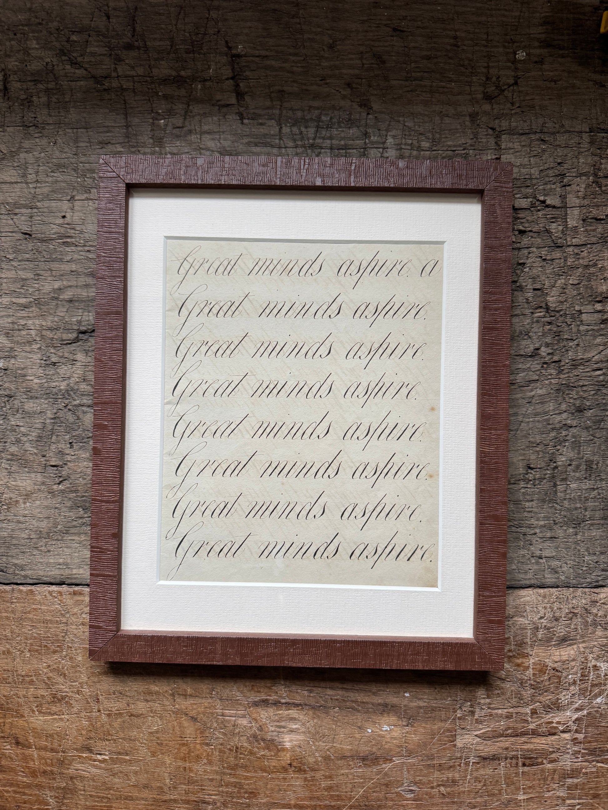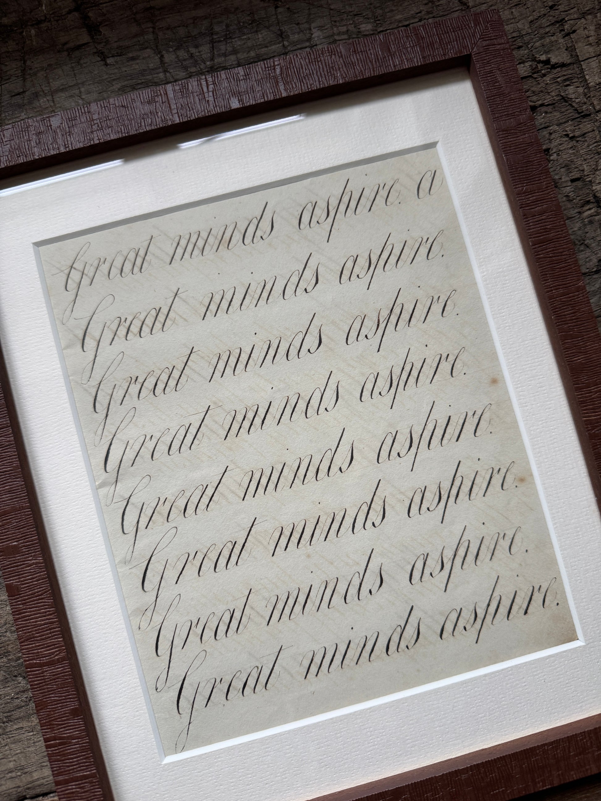 Framed piece taken from Georgian calligraphy exercise book dated to 1814.