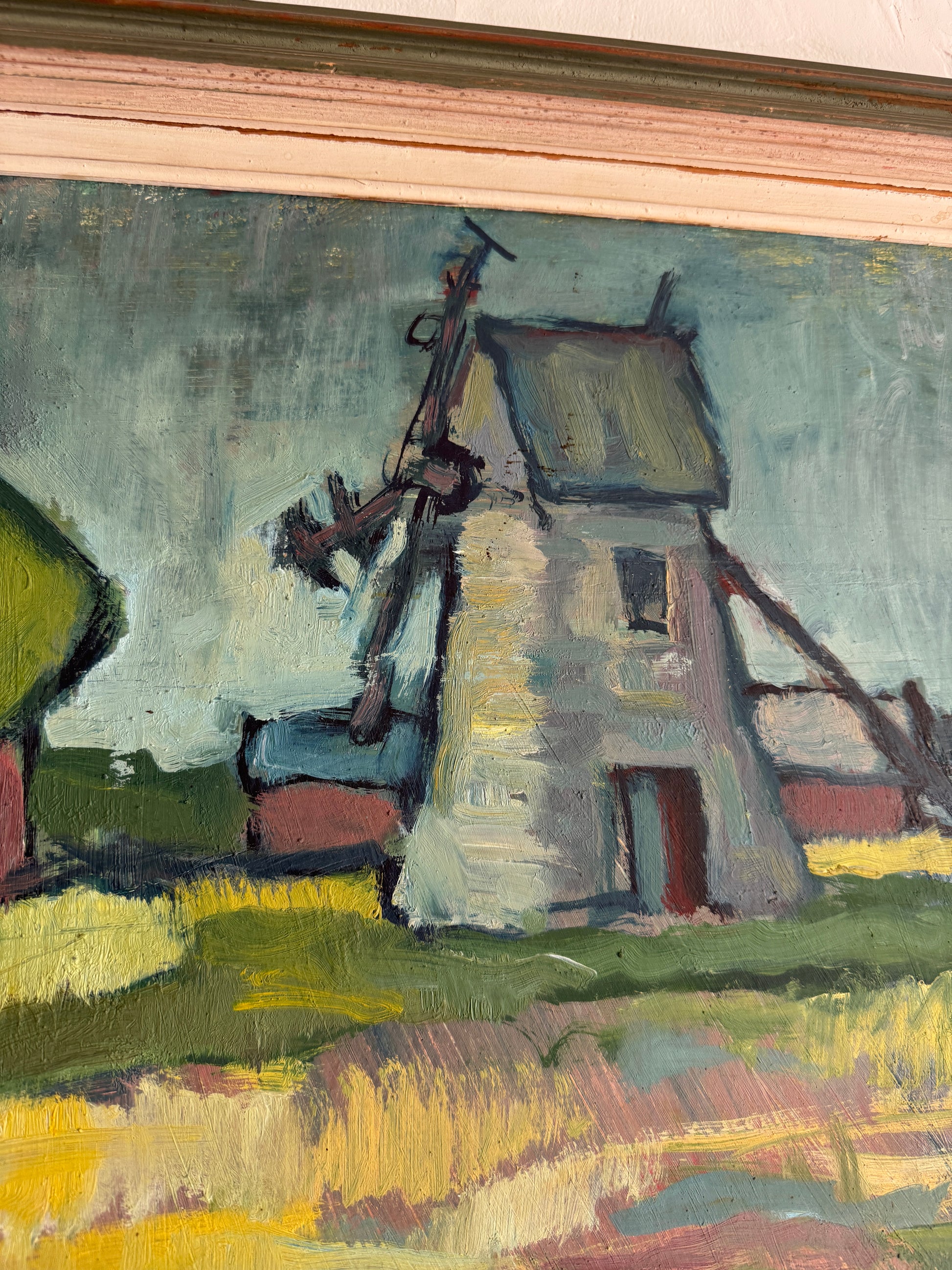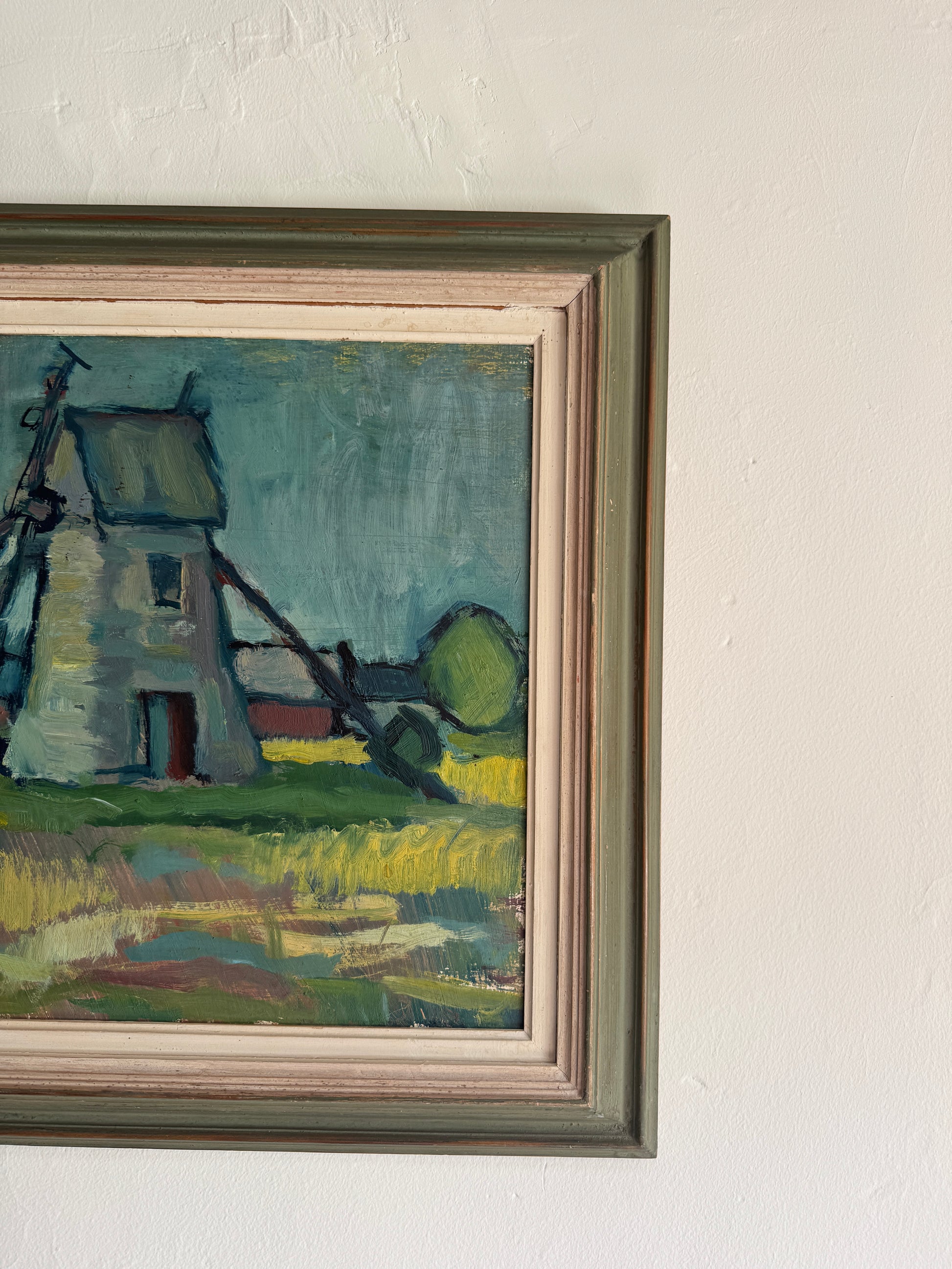 Large oil painting on white windmill.
