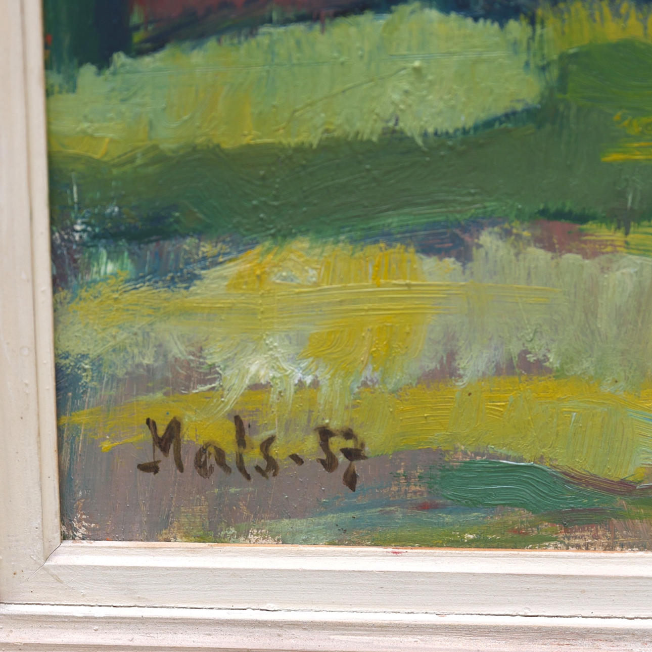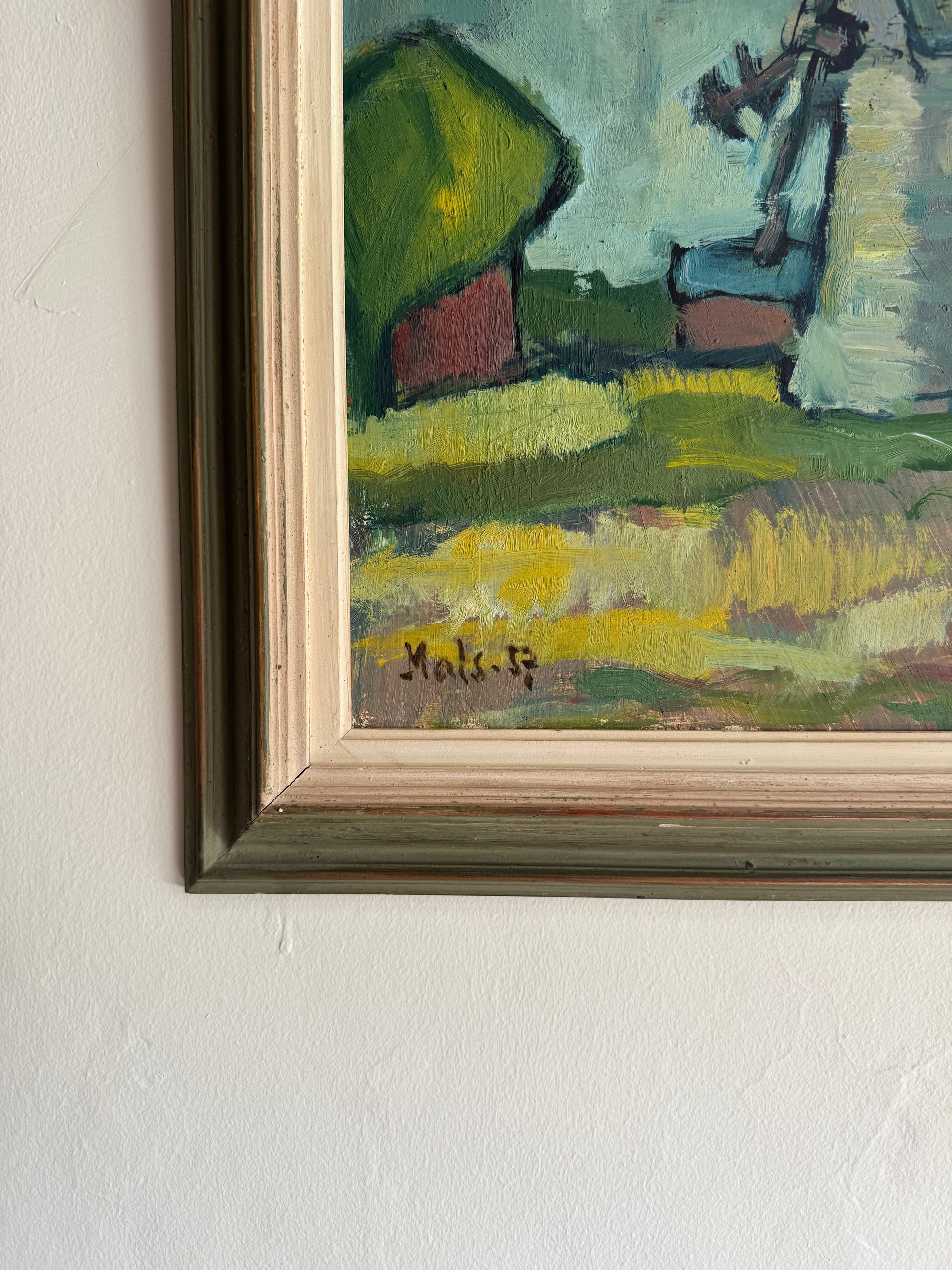 Framed in white and green wooden frame
